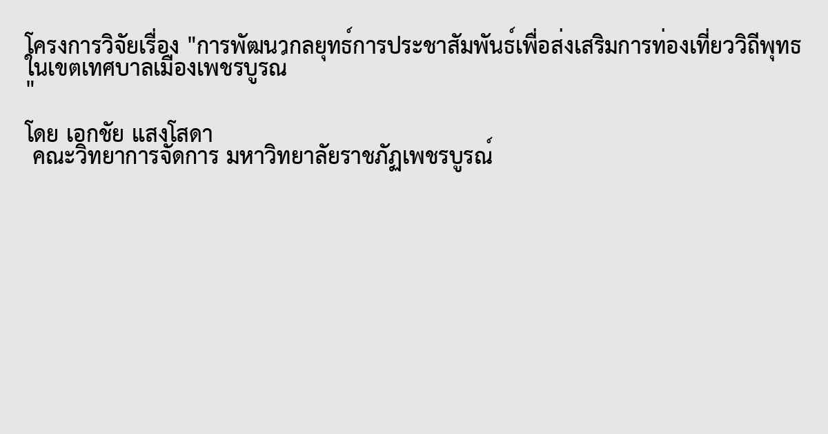 การพัฒนากลยุทธ์การประชาสัมพันธ์เพื่อส่งเสริมการท่องเที่ยววิถีพุทธ ในเขตเทศบาลเมืองเพชรบูรณ์