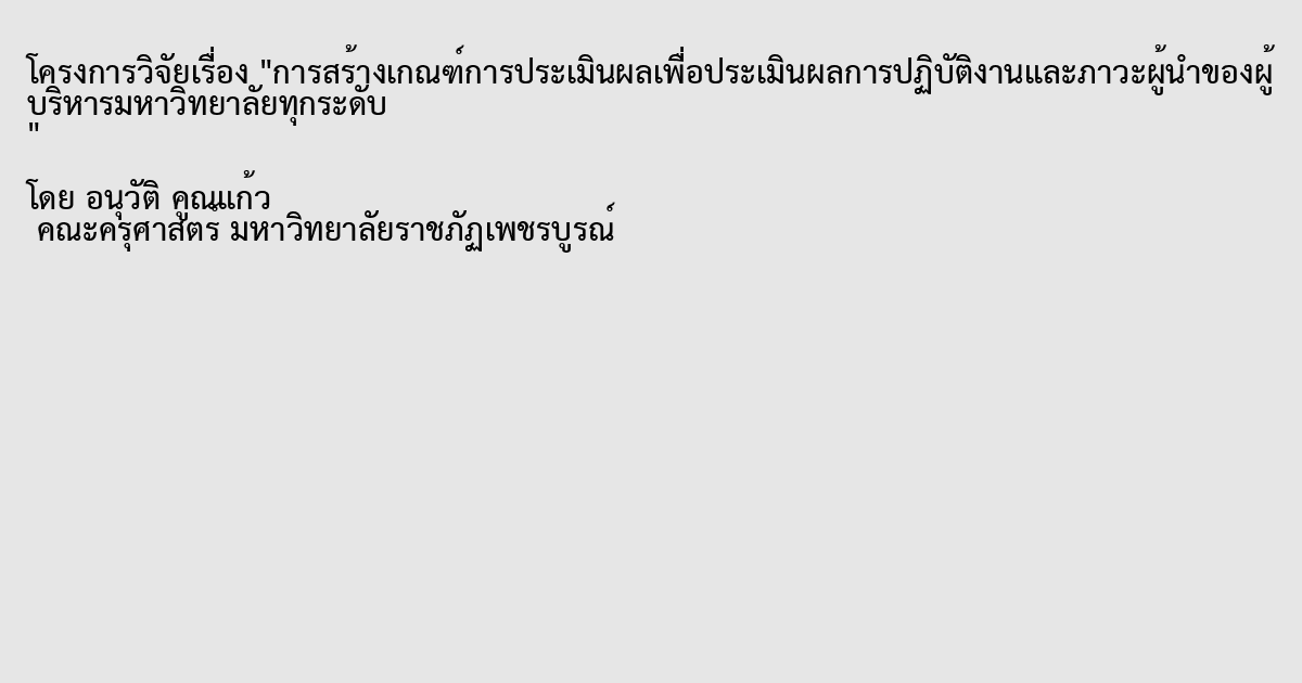 การสร้างเกณฑ์การประเมินผลเพื่อประเมินผลการปฏิบัติงานและภาวะผู้นำของผู้บริหารมหาวิทยาลัยทุกระดับ
