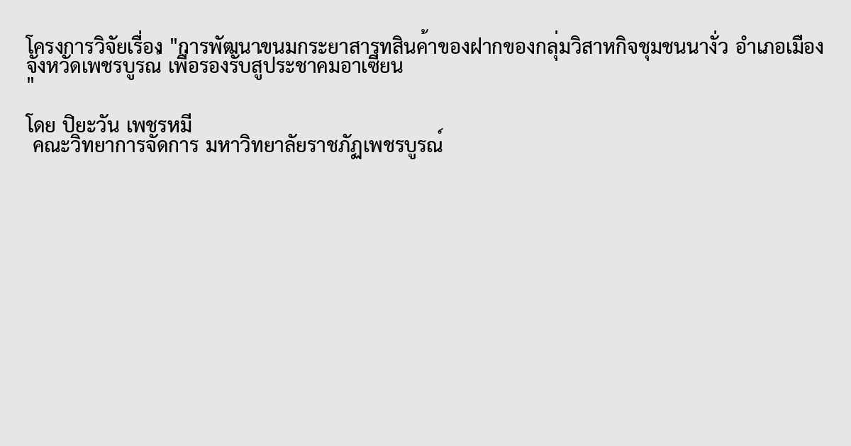 การพัฒนาขนมกระยาสารทสินค้าของฝากของกลุ่มวิสาหกิจชุมชนนางั่ว อำเภอเมือง จังหวัดเพชรบูรณ์ เพื่อรองรับสู่ประชาคมอาเซียน