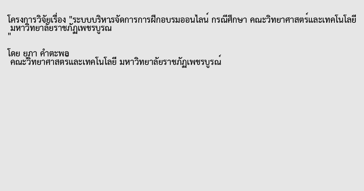 ระบบบริหารจัดการการฝึกอบรมออนไลน์ กรณีศึกษา คณะวิทยาศาสตร์และเทคโนโลยี มหาวิทยาลัยราชภัฏเพชรบูรณ์