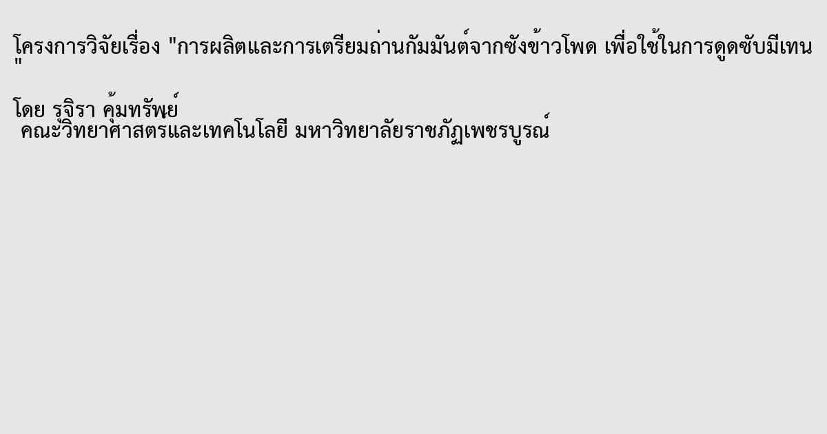 การผลิตและการเตรียมถ่านกัมมันต์จากซังข้าวโพด เพื่อใช้ในการดูดซับมีเทน