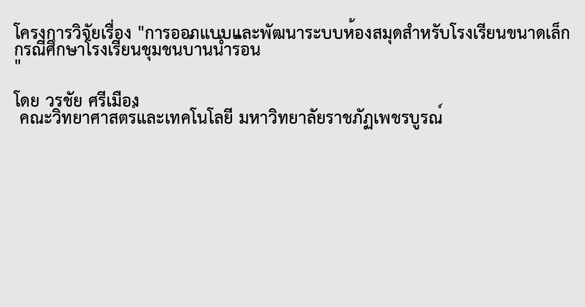 การออกแบบและพัฒนาระบบห้องสมุดสำหรับโรงเรียนขนาดเล็ก กรณีศึกษาโรงเรียนชุมชนบ้านน้ำร้อน