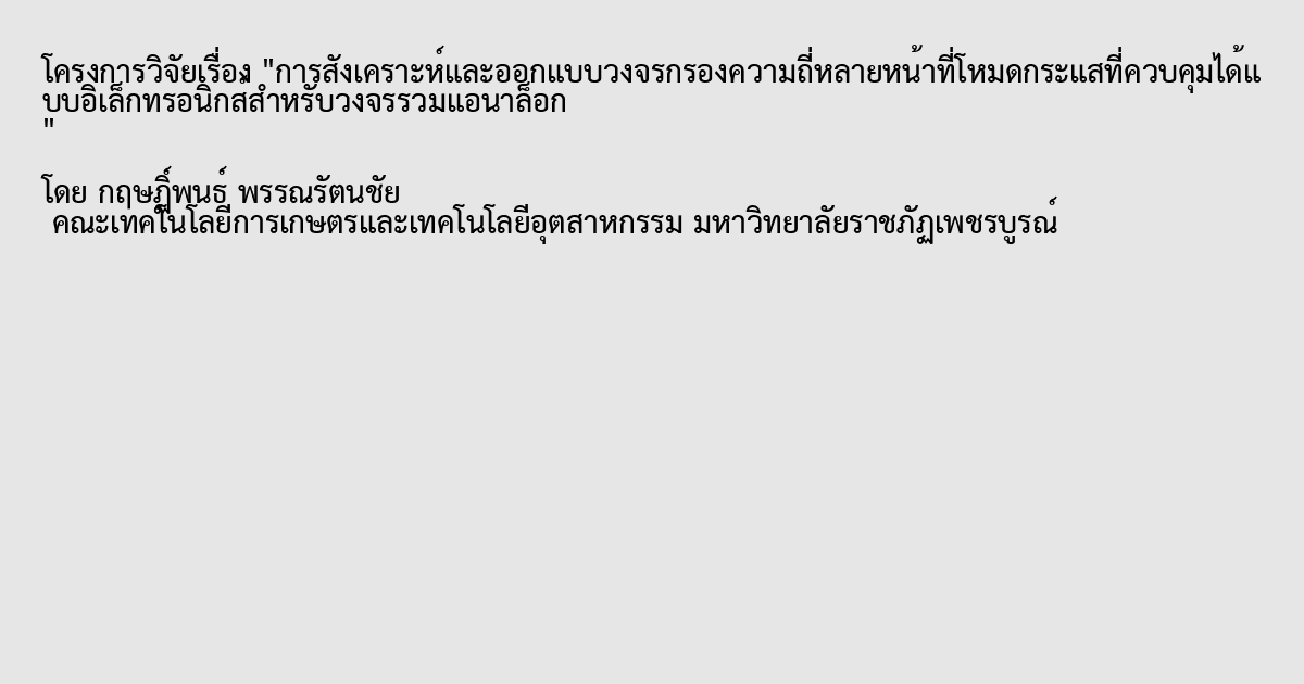 การสังเคราะห์และออกแบบวงจรกรองความถี่หลายหน้าที่โหมดกระแสที่ควบคุมได้แบบอิเล็กทรอนิกส์สำหรับวงจรรวมแอนาล็อก