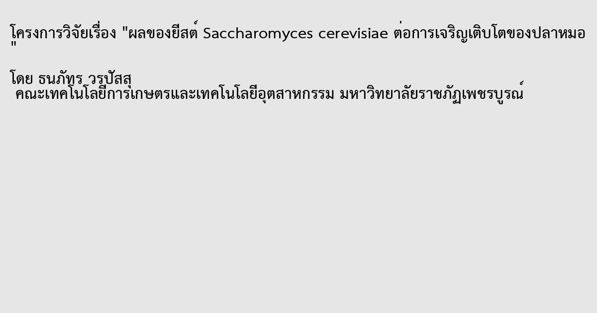 ผลของยีสต์ Saccharomyces cerevisiae ต่อการเจริญเติบโตของปลาหมอ