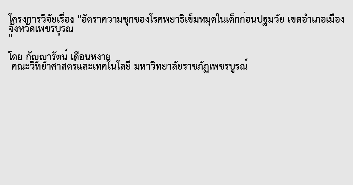 อัตราความชุกของโรคพยาธิเข็มหมุดในเด็กก่อนปฐมวัย เขตอำเภอเมือง จังหวัดเพชรบูรณ์