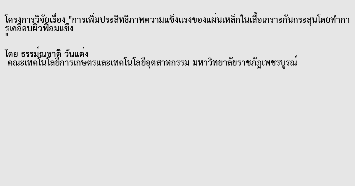 การเพิ่มประสิทธิภาพความแข็งแรงของแผ่นเหล็กในเสื้อเกราะกันกระสุนโดยทำการเคลือบผิวฟิล์มแข็ง
