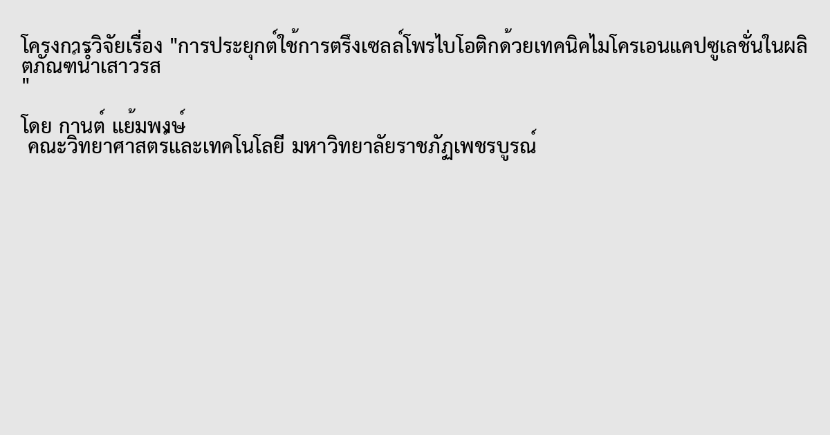 การประยุกต์ใช้การตรึงเซลล์โพรไบโอติกด้วยเทคนิคไมโครเอนแคปซูเลชั่นในผลิตภัณฑ์น้ำเสาวรส