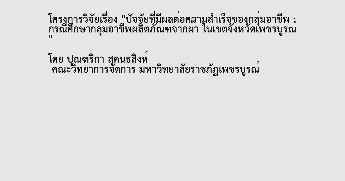ปัจจัยที่มีผลต่อความสำเร็จของกลุ่มอาชีพ : กรณีศึกษากลุ่มอาชีพผลิตภัณฑ์จากผ้า ในเขตจังหวัดเพชรบูรณ์