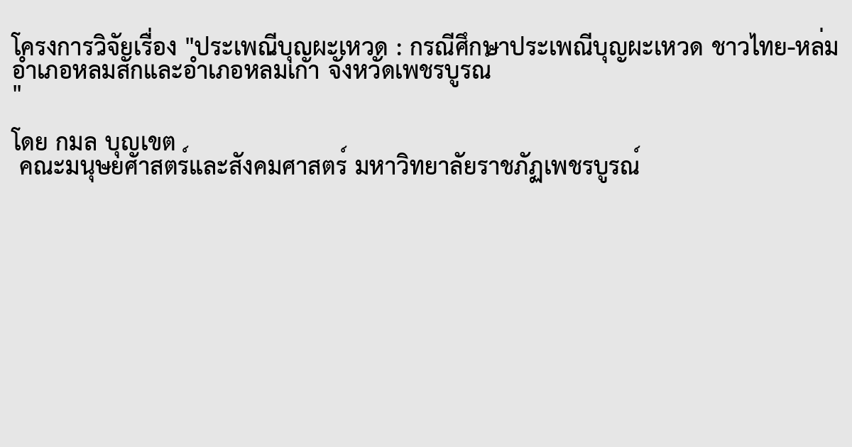 ประเพณีบุญผะเหวด : กรณีศึกษาประเพณีบุญผะเหวด ชาวไทย-หล่ม อำเภอหล่มสักและอำเภอหล่มเก่า จังหวัดเพชรบูรณ์