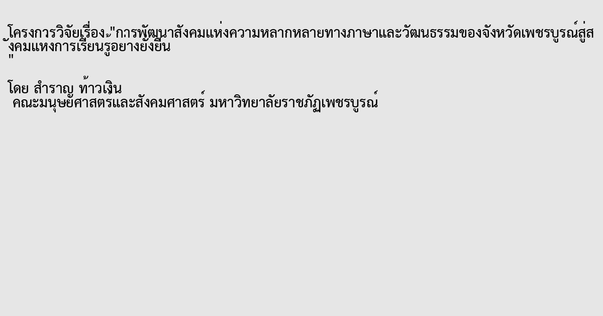 การพัฒนาสังคมแห่งความหลากหลายทางภาษาและวัฒนธรรมของจังหวัดเพชรบูรณ์สู่สังคมแห่งการเรียนรู้อย่างยั่งยืน