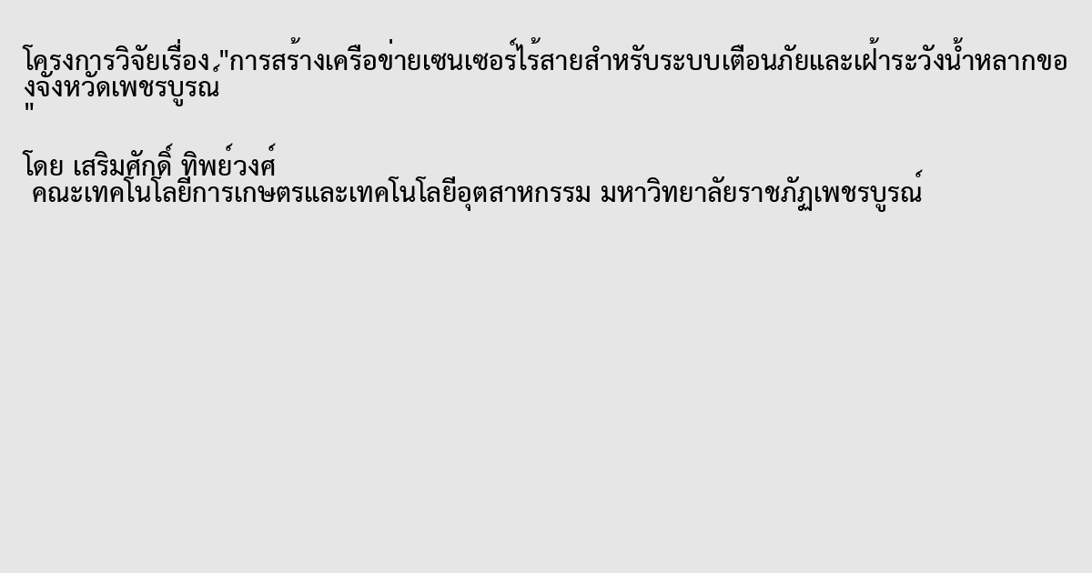 การสร้างเครือข่ายเซนเซอร์ไร้สายสำหรับระบบเตือนภัยและเฝ้าระวังน้ำหลากของจังหวัดเพชรบูรณ์
