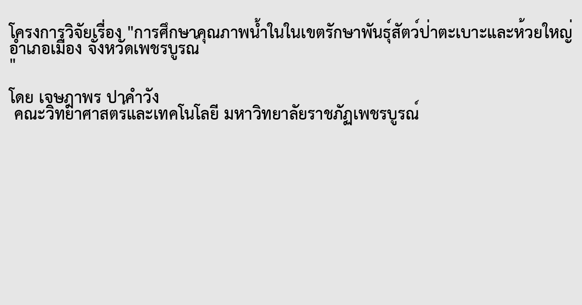 การศึกษาคุณภาพน้ำในในเขตรักษาพันธุ์สัตว์ป่าตะเบาะและห้วยใหญ่ อำเภอเมือง จังหวัดเพชรบูรณ์