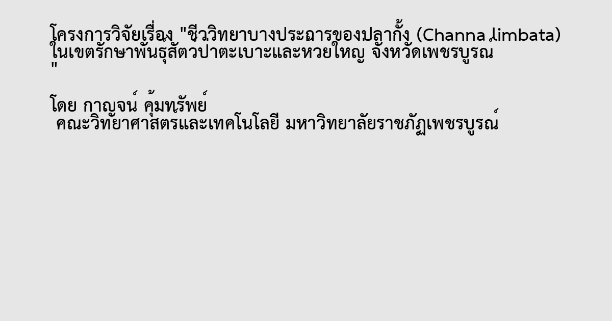 ชีววิทยาบางประการของปลากั้ง (Channa limbata) ในเขตรักษาพันธุ์สัตว์ป่าตะเบาะและห้วยใหญ่ จังหวัดเพชรบูรณ์