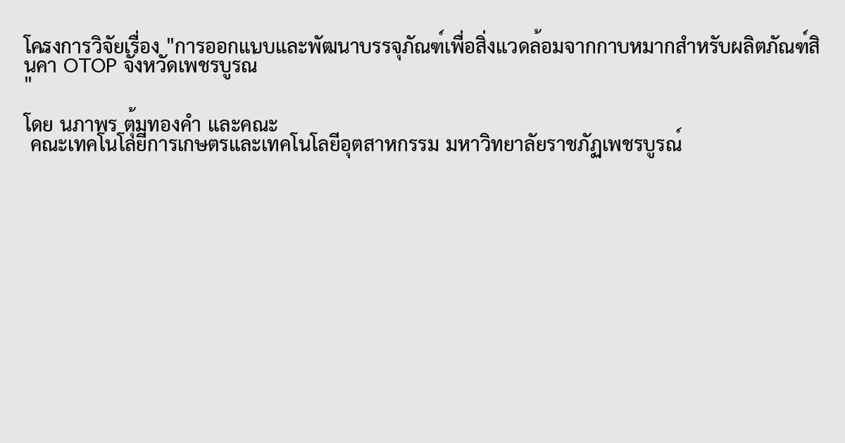 การออกแบบและพัฒนาบรรจุภัณฑ์เพื่อสิ่งแวดล้อมจากกาบหมากสำหรับผลิตภัณฑ์สินค้า OTOP จังหวัดเพชรบูรณ์