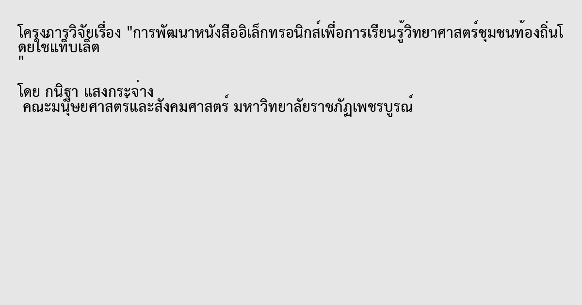 การพัฒนาหนังสืออิเล็กทรอนิกส์เพื่อการเรียนรู้วิทยาศาสตร์ชุมชนท้องถิ่นโดยใช้แท็บเล็ต