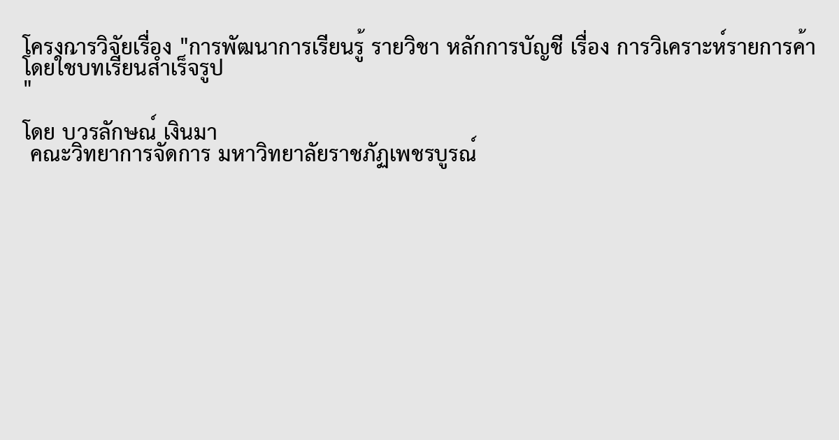 การพัฒนาการเรียนรู้ รายวิชา หลักการบัญชี เรื่อง การวิเคราะห์รายการค้า โดยใช้บทเรียนสำเร็จรูป