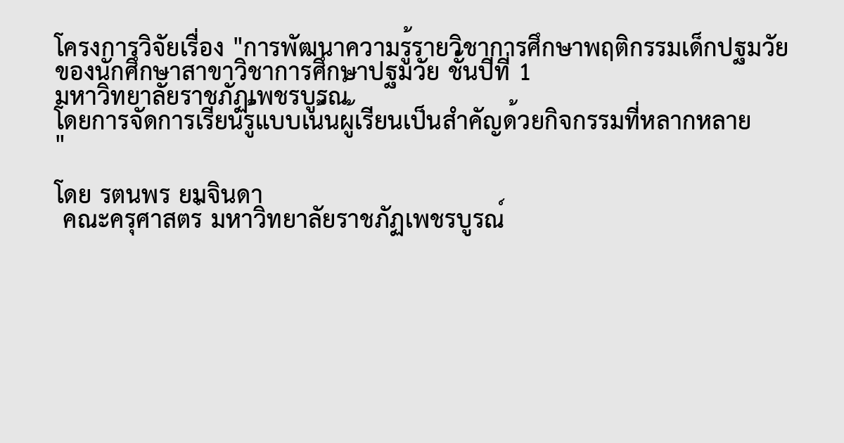 การพัฒนาความรู้รายวิชาการศึกษาพฤติกรรมเด็กปฐมวัย ของนักศึกษาสาขาวิชาการศึกษาปฐมวัย ชั้นปีที่ 1 มหาวิทยาลัยราชภัฏเพชรบูรณ์ โดยการจัดการเรียนรู้แบบเน้นผู้เรียนเป็นสำคัญด้วยกิจกรรมที่หลากหลาย