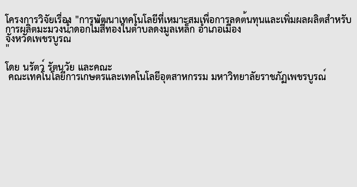การพัฒนาเทคโนโลยีที่เหมาะสมเพื่อการลดต้นทุนและเพิ่มผลผลิตสำหรับ การผลิตมะม่วงน้ำดอกไม้สีทองในตำบลดงมูลเหล็ก อำเภอเมือง จังหวัดเพชรบูรณ์