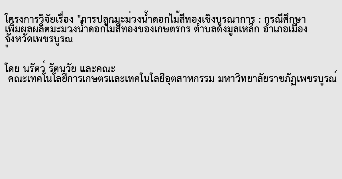 การปลูกมะม่วงน้ำดอกไม้สีทองเชิงบูรณาการ : กรณีศึกษา เพิ่มผลผลิตมะม่วงน้ำดอกไม้สีทองของเกษตรกร ตำบลดงมูลเหล็ก อำเภอเมือง จังหวัดเพชรบูรณ์