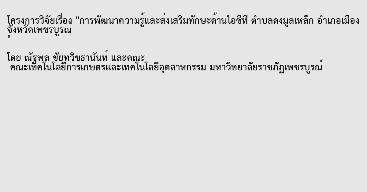 การวิวัยครั้งนี้มีวัตถุประสงค์เพื่อการพัฒนาความรู้และส่งเสริมด้านไอซีที ที่ตำบลมูลเหล็ก อำเภอเมือง