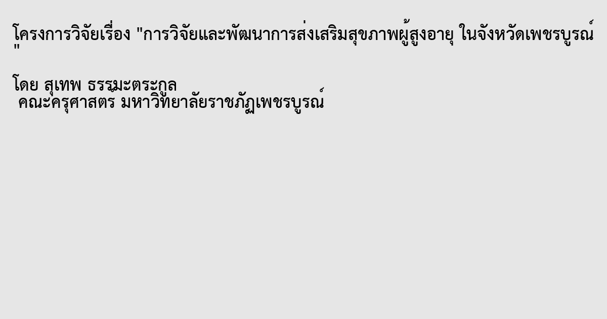 การวิจัยและพัฒนาการส่งเสริมสุขภาพผู้สูงอายุ ในจังหวัดเพชรบูรณ์