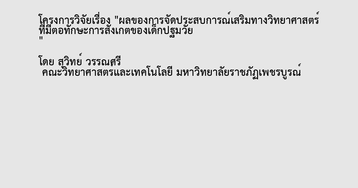 ผลของการจัดประสบการณ์เสริมทางวิทยาศาสตร์ ที่มีต่อทักษะการสังเกตของเด็กปฐมวัย