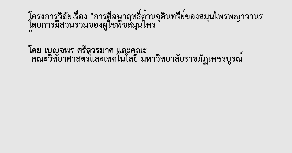 เนื่องจากได้รับการร้องขอจากชาวบ้านในอำเภอเมืองและอำเภอหล่มสัก จังหวัดเพชรบูรณ์ ให้ทำการวิจัยสรรพคุณของสมุนไพรพญาวานรหรือฮวานง็อก ผู้วิจัยจึงได้ดำเนินการทำสารสกัดหยาบ(crude)จากราก ลำต้น ใบ และทั้งต้นของสมุนไพรพญาวานร นำไปทดสอบกับเชื้อจุลินทรีย์ 4 ชนิด คือ ซัลโมเนลลา อี.คอไล สแตปฟิลโลคอกคัส ออเรียส และชิเจลลา โดยวิธีวงกระดาษกรอง(disk diffusion test) พบว่าสารสกัดหยาบจากใบและทั้งต้น ทำให้เกิดบริเวณใส(clear zone)บนจานเลี้ยงเชื้อซัลโมเนลลาและอี.คอไลเท่านั้น ที่ความเข้มข้น 1:10 โดยเกิดบริเวณใสที่มีเส้นผ่าศูนย์กลาง 2.50 ซ.ม. และ 2.22 ซ.ม. ตามลำดับ พร้อมทั้งทำการสัมภาษณ์แบบเจาะลึก ผู้ใช้สมุนพรชนิดนี้ในการรักษาโรคต่างๆจาก 5 อำเภอของจังหวัดเพชรบูรณ์ จำนวน 200 คน เป็นผู้ชาย 32.86% และผู้หญิง 64.14% มีอายุตั้งแต่ 4 ปี ถึง 90 ปี ประกอบอาชีพเกษตรกร ค้าขาย แม่บ้าน ข้าราชการ พระ และชาวบ้านทั่วไป มีทั้งยากจน ปานกลาง และร่ำรวย พบว่าผู้ใช้สมุนไพรตัวนี้ในการรักษาโรคต่างๆถึง 22 โรค โดยใช้ตามคำบอกเล่าต่อๆกันมา ยิ่งกว่านั้นพบว่า มีเพียง 2 กลุ่มโรคเท่านั้นที่สัมพันธ์กับผลการทดลองในการปฏิบัติการ คือ กลุ่มโรคทางเดินอาหาร และกลุ่มโรคบนผิวหนัง